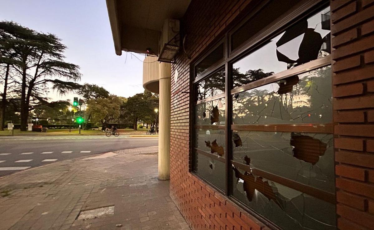 Más tarde, en principio en horas de la madrugada, fue vandalizada la sede de Rosario Central de calle Mitre al 800. La estructura de la institución fue salpicada con pintura de color verde.