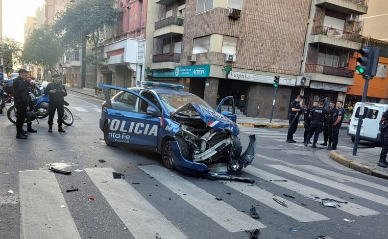 Según precisó el móvil de Cadena 3 Rosario, en Radioinforme 3, el patrullero impactó contra el colectivo, por lo que su trompa quedó destruida.