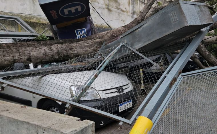 Un jacarandá de gran tamaño cayó esta mañana en un estacionamiento de Balcarce al 200 y destruyó cuatro vehículos.