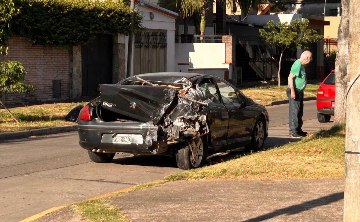 Un Peugeot color negro ha quedado con todo el tren trasero completamente destruido. A pesar de la magnitud del choque, los ocupantes de los vehículos involucrados se encuentran fuera de peligro.