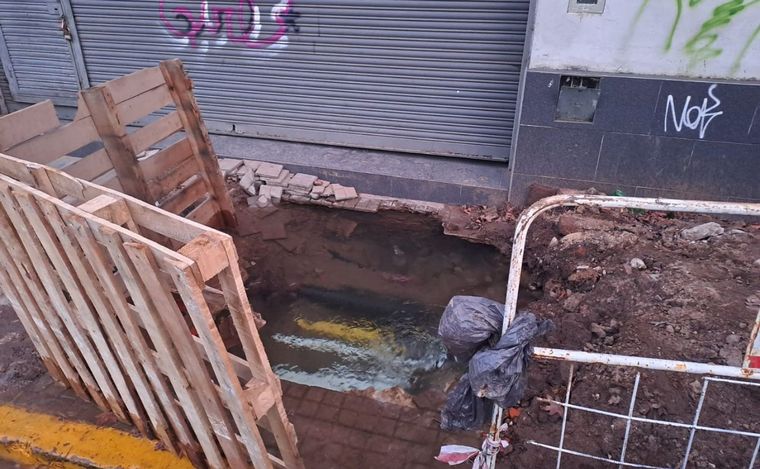 Hace dos meses comenzaron una obra en la vereda de calle Ovidio Lagos al 1500, sigue abierto emanando mucha agua y aseguran que tiene electricidad.