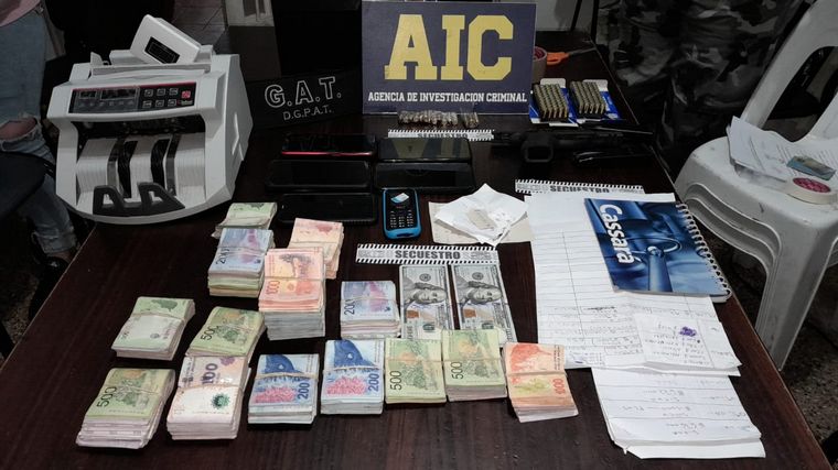 Al inspeccionar los domicilios se encontraron una pistola 9mm con 115 municiones, 3 cartuchos calibre 12/70, una pistola calibre 22, 38 cartuchos calibre 38. También 78 dosis de cocaína y envoltorios de estupefacientes. Se secuestraron varios celulares, 3 motocicletas, 2 vehículos y 1.000.000 de pesos.