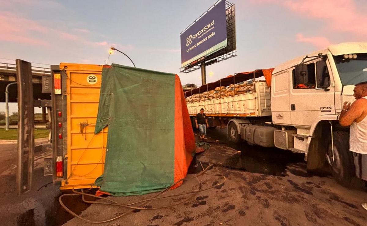 Volcó un camión en Avellaneda y Circunvalación: "Gracias a Dios estoy bien"