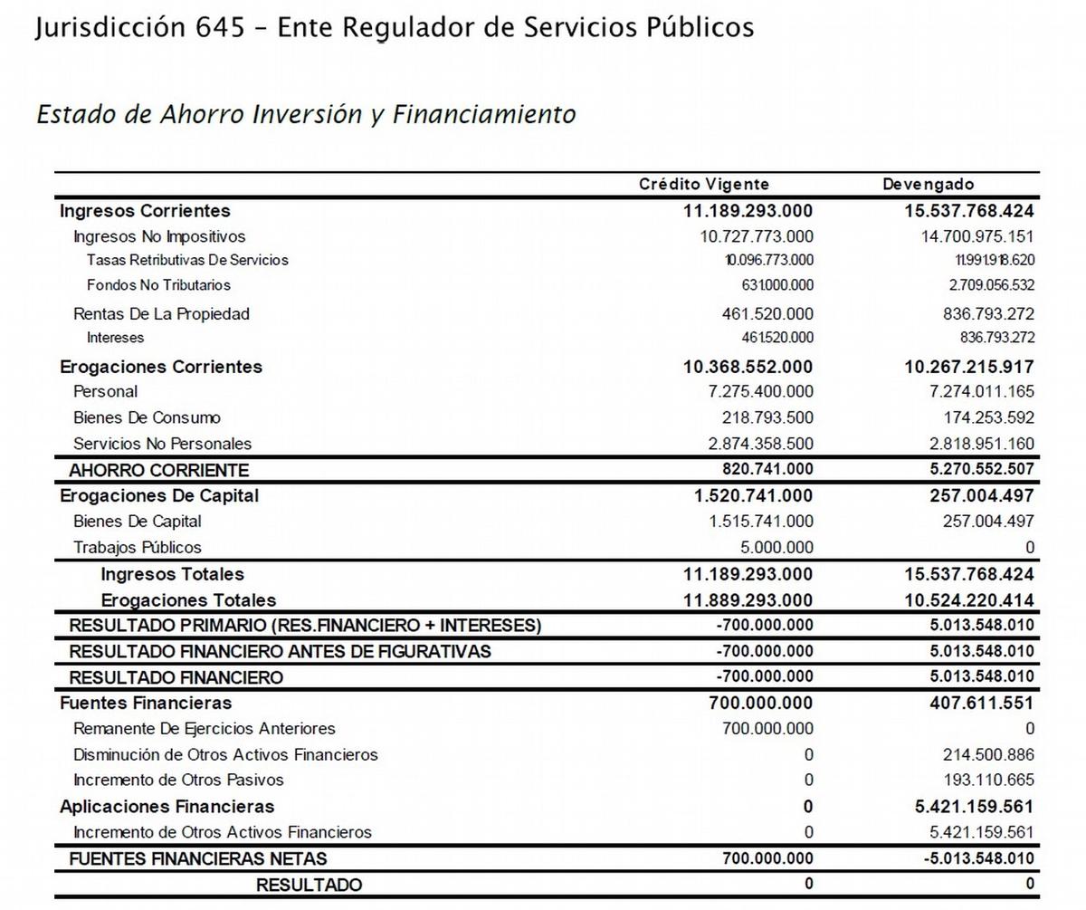 Dentro de la Cuenta de Inversión 2025 presentada por el Gobierno de Martín Llaryora se observa el apartado perteneciente a los costos de funcionamiento del Ente Regulador de Servicios Públicos (Ersep).