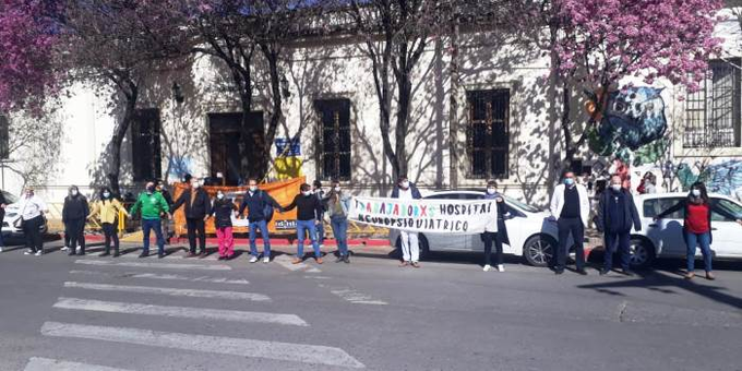 Este martes a las 10 se realizó un abrazo simbólico al Hospital Neuropsiquiátrico de barrio Juniors en la capital cordobesa, en señal de protesta por paritarias y la falta de personal, que dificulta el manejo de los pacientes.