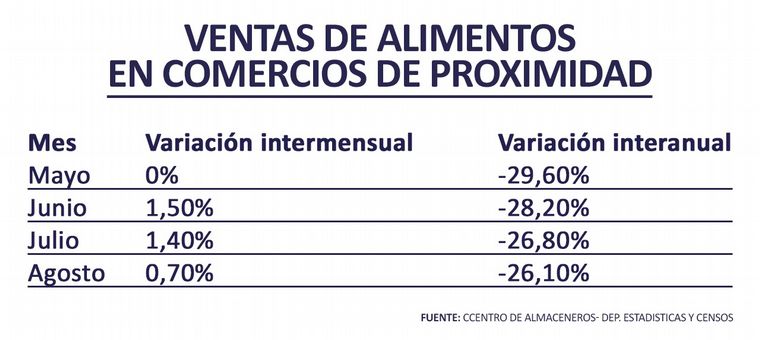 El Centro de Almaceneros de Córdoba precisó que el volumen comercializado en comercios de proximidad crece levemente desde junio. La variación interanual sigue dando negativa, superando el 25%.