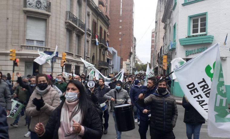 Hay asambleas de dos horas por turno y luego quite de colaboración en la mayoría de las dependencias. Bulevar Chacabuco al 700, y San Martín y Mitre, escenario de los cortes.