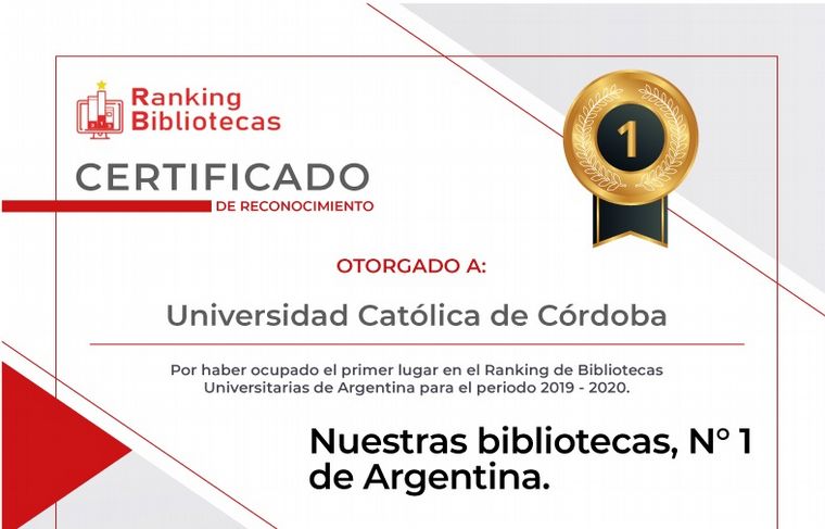 La biblioteca de la Universidad Católica de Córdoba (UCC) fue evaluada por el Ranking de Bibliotecas y logró el primer puesto a nivel nacional y el décimo a nivel de Latinoamérica.