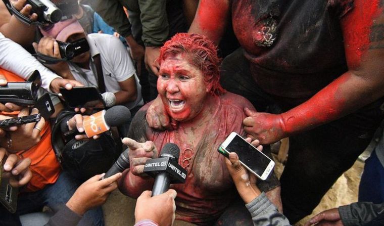Se trata de Patricia Arce, alcaldesa de Vinto, quien fue abordada por un grupo de manifestantes que la arrastró por la calle, la roció con pintura y le cortaron el cabello. Video.