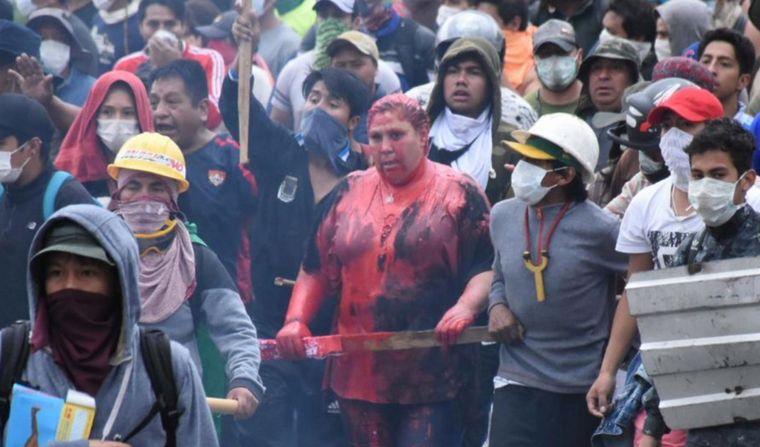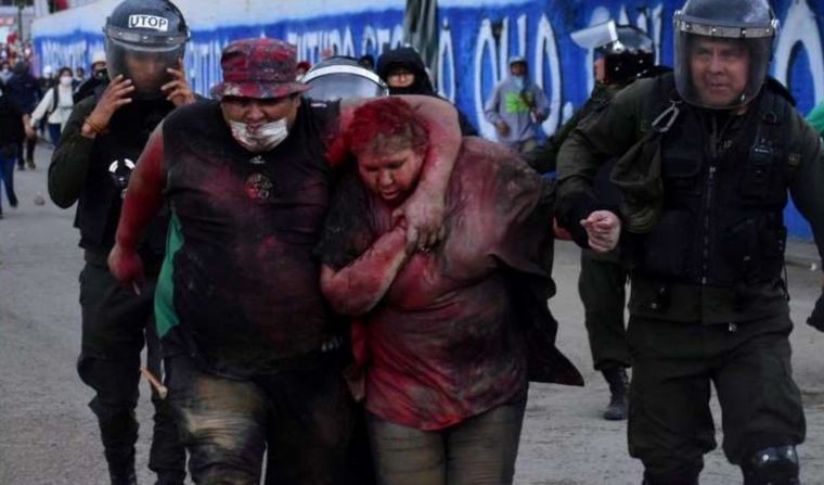 La alcaldesa Arce salió corriendo descalza por la calle entre empujones, perseguida por un grupo que la agredió gritándole "asesina" hasta que cayó al suelo y fue abordada por sus perseguidores que le cortaron el pelo y le tiraron pintura.