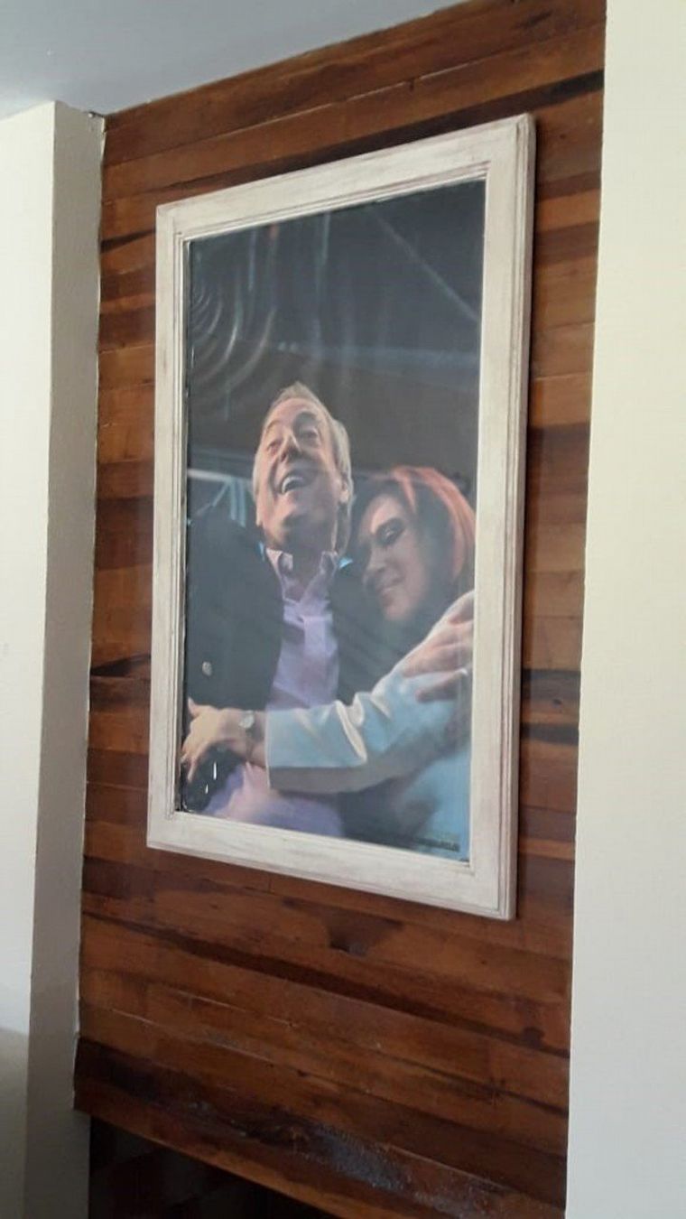 Otro detalle que llamó la atención es que tenían un cuadro de Néstor y Cristina Kirchner colgado sobre la chimenea del lugar.