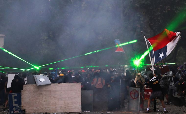 Con "solidaridad láser" sucedió en plaza Italia, en Santiago de Chile.