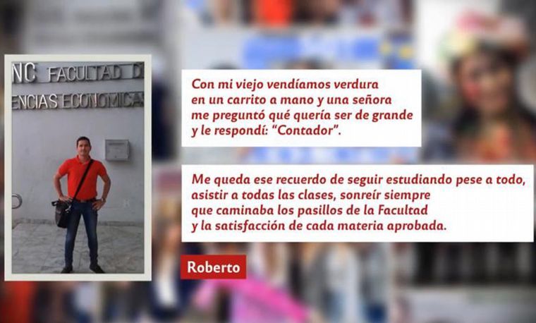 Roberto reconoce y agradece a la UNC por las oportunidades que le brindó, si bien reconoce que hay mucho mérito en su historia.