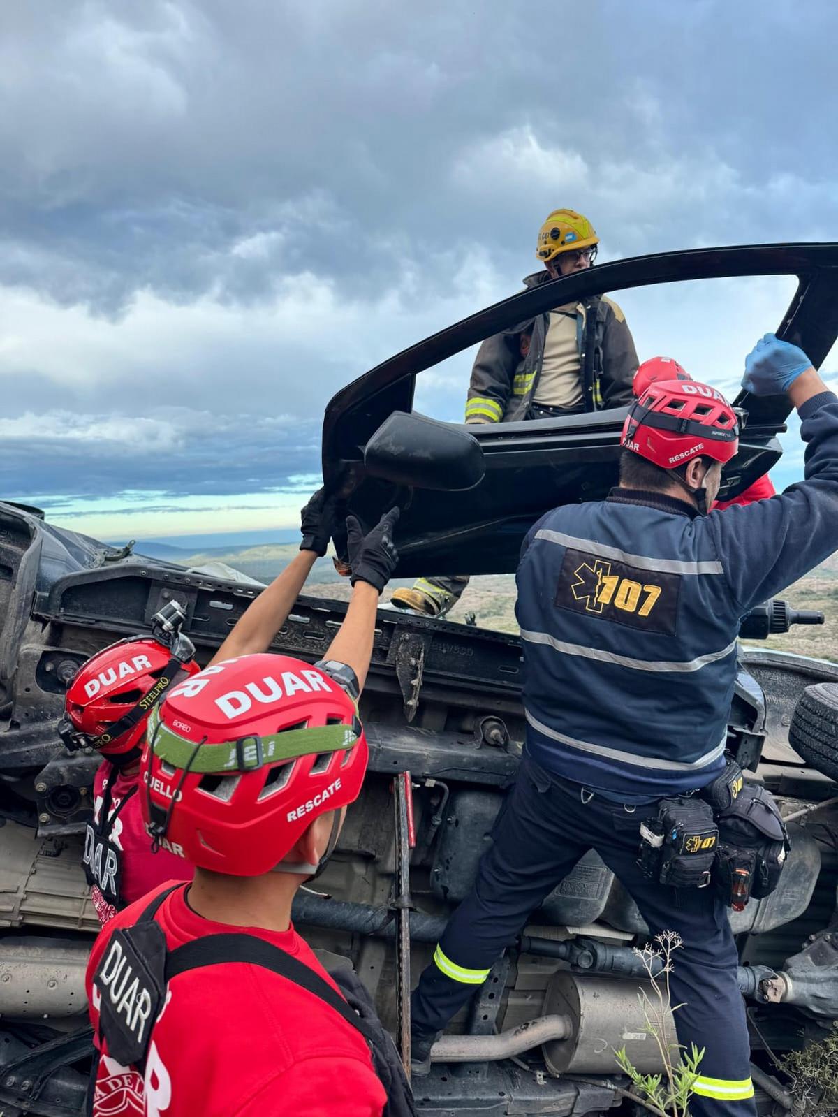 La complejidad del terreno obligó a un despliegue masivo de fuerzas de seguridad. Efectivos del Departamento de Unidades de Alto Riesgo (DUAR), en conjunto con Bomberos Voluntarios y personal de la Departamental San Alberto, debieron realizar maniobras especializadas para acceder al fondo del precipicio.