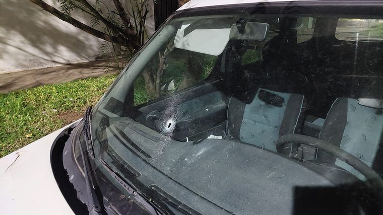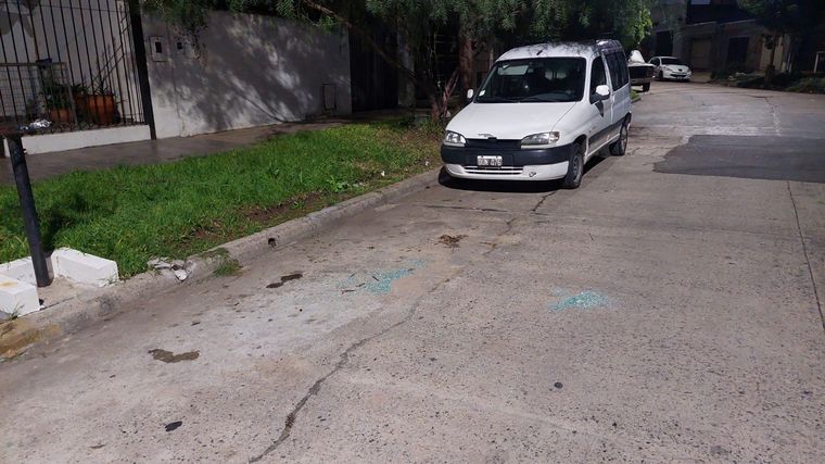 "En el momento en que dispararon, se vio un impacto de entrada y salida por la puerta lateral del conductor, donde reventó automáticamente los vidrios, y uno fue a parar también a una de las ruedas. Se puede ver también en un utilitario un balazo en el parabrisas"; contó a Cadena 3 Adrián, un vecino.