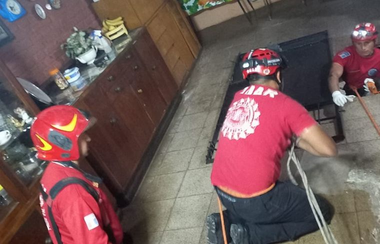 "Cedió el piso, la mujer cayó en el interior y quedó con una pierna aprisionada por lo que se tuvo que estabilizar el lugar para hacer la extracción de la persona", detalló.