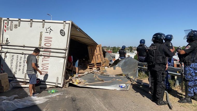 En las imágenes obtenidas por el periodista de radio Mitre, Leo Guevara, quienes intentaban retirar la mercadería, arrojaron piedras a los policías y camioneros. Infantería respondió con balas de goma. Luego se sumó la Sección Especial de Operaciones Motorizadas.