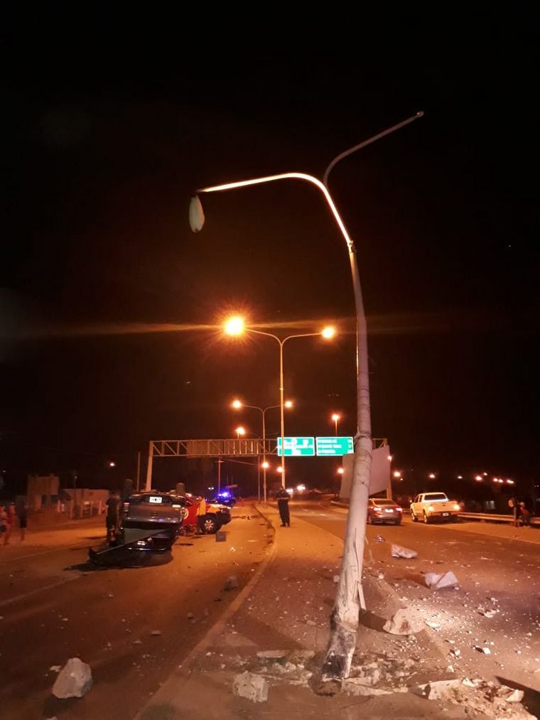 En tanto, la camioneta también chocó con una columna de iluminación y termino tumbada.