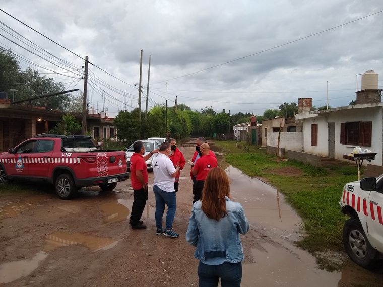 Personal de Defensa Civil y el COyS recorrieron la zona. Desagotan las calles. El nivel de agua bajó pero aún queda una importante cantidad de barro. El problema estructural es la falta de desagües.