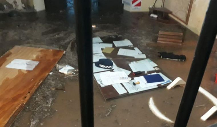 Entre los casos más llamativos, la lluvia causó serios problemas en el destacamento policial del barrio Marti Coll en Yerba Buena, donde el agua arrastró a un móvil y los policías debieron retirar a los presos en canoa.
