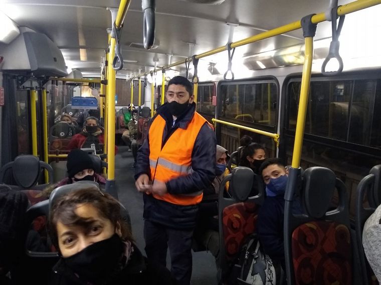 Inspectores municipales, de las empresas y personal policial se sube a las unidades y pide que todo el mundo tenga el barbijo bien colocado, se verifica la cantidad de pasajeros y se pide que abran las ventanillas. Por el momento no se les pide el certificado de trabajador esencial.