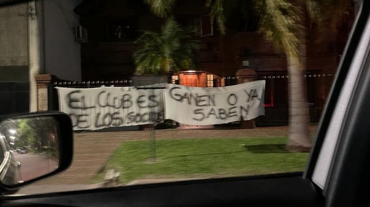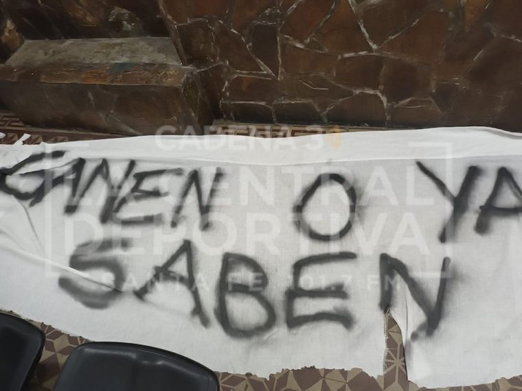 "Ganen o ya saben" es la frase de uno de los `trapos´ que desconocidos colgaron de la reja de la casa del titular "sabalero", en clara alusión al partido que Colón jugará esta noche ante Banfield, por la duodécima fecha de la Copa de la Liga Profesional.