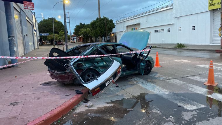 Según relataron testigos, el Gol venía a toda velocidad desde Circunvalación mientras lo seguía la Policía e impactó con el Laguna, que pasaba en verde y donde iban dos adultos y un niño.