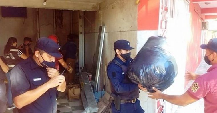 El allanamiento se concretó el domingo. Se secuestraron bidones y botellas de agua, ropa nueva y usada y zapatillas.