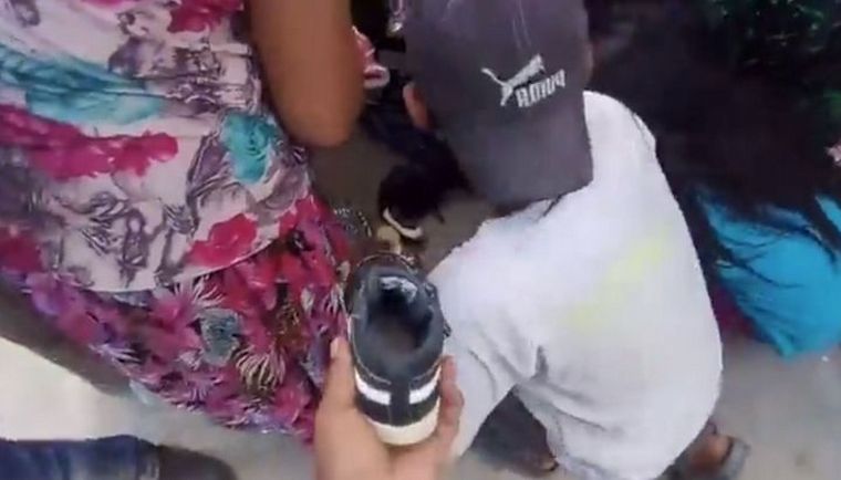 Unos pocos pudieron pugnar por llevar algo de ropa usada, de dudosa higiene de la vereda. Quedaron esparcidas zapatillas sin su par y prendas inutilizables.