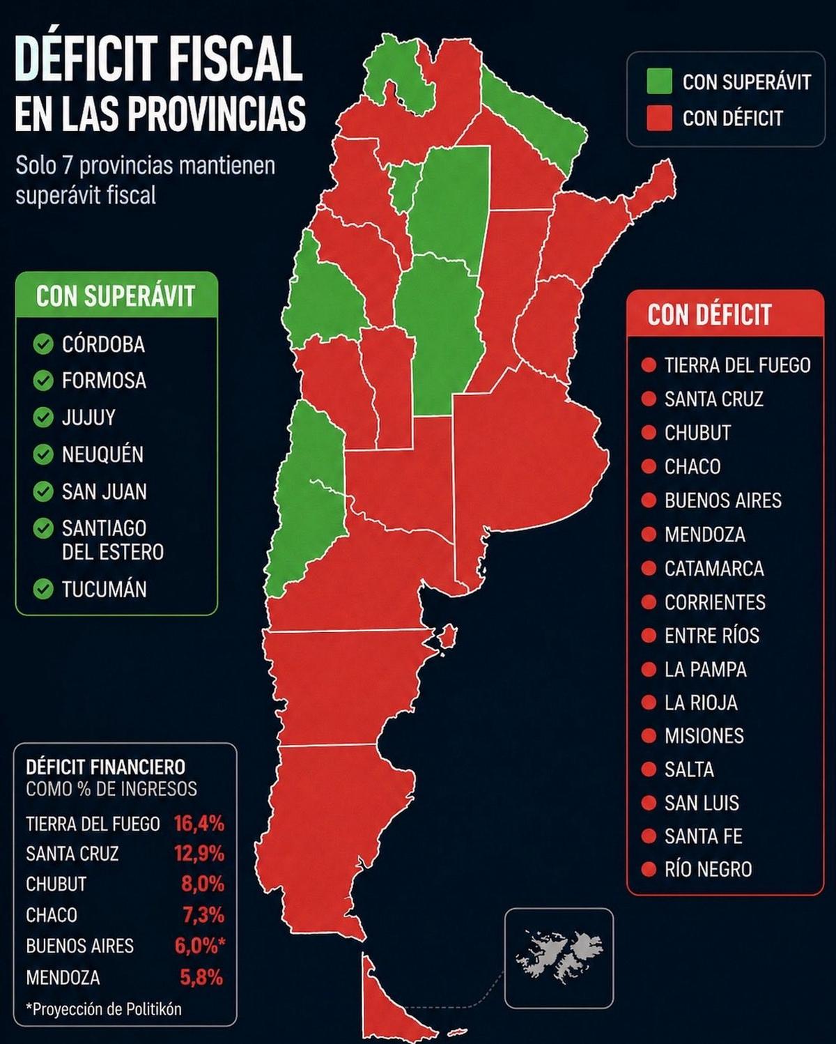 Solo siete provincias lograron terminar el año con números positivos, aunque todos con superávit más bajo que antes: Córdoba, Formosa, Jujuy, Neuquén, San Juan, Santiago del Estero y Tucumán. El resto cerró en rojo.