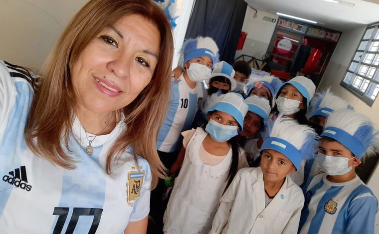 La maestra les pide que cada alumno exponga en clase lo que han investigado sobre el país con el que juega Argentina los días previos al partido y se forman mesas de debate.