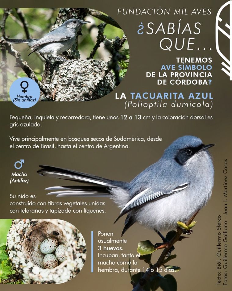 La Tacuarita Azul fue elegida el ave insignia de la provincia de Córdoba