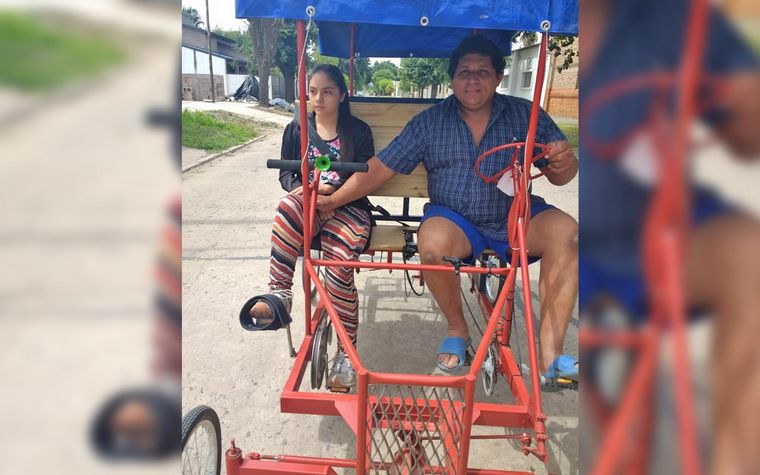 La joven estaba realizando su rehabilitación en Rosario, pero por la pandemia no la pudo seguir haciendo y Martín buscó los materiales para fabricar una bici doble para que pueda continuar con los ejercicios y pasear por la ciudad.