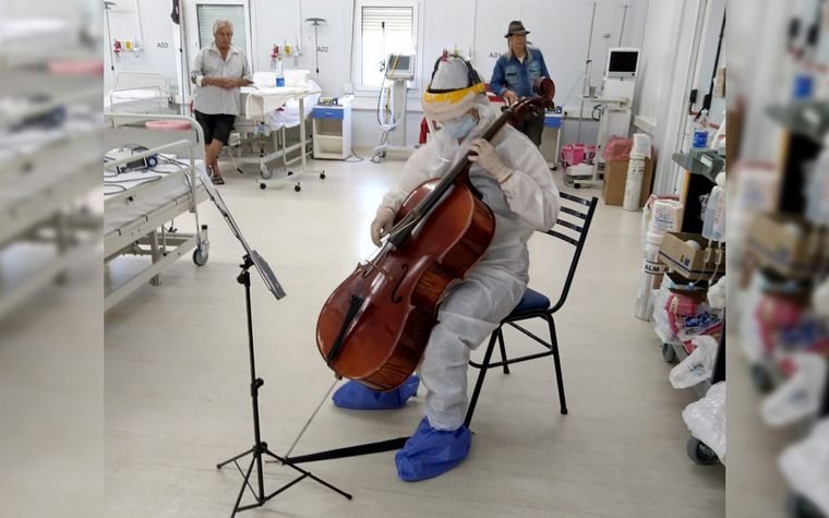 “El repertorio era muy variado, pero tuvimos que ajustarlo porque con todo el equipo de protección no ves las partituras, no ves el violín, no podés tocar bien. Pero lo pudimos solucionar y lo hicimos”, dijo la médica a Cadena 3.