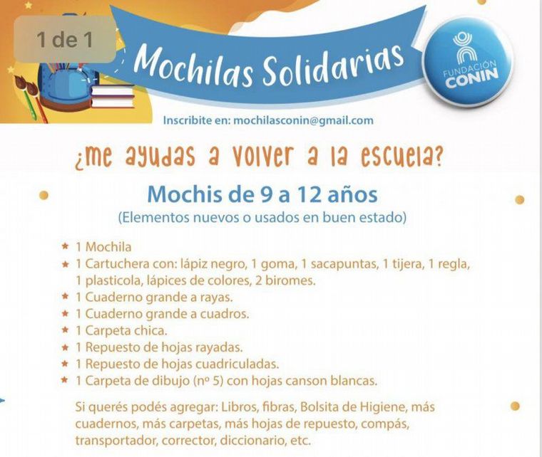 Se puede cooperar armando una mochila con útiles usados, pero en buenas condiciones o aportar dinero para armarlas.