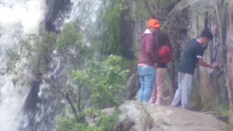 Padre e hijos, multados por grafitear la cascada de Tanti