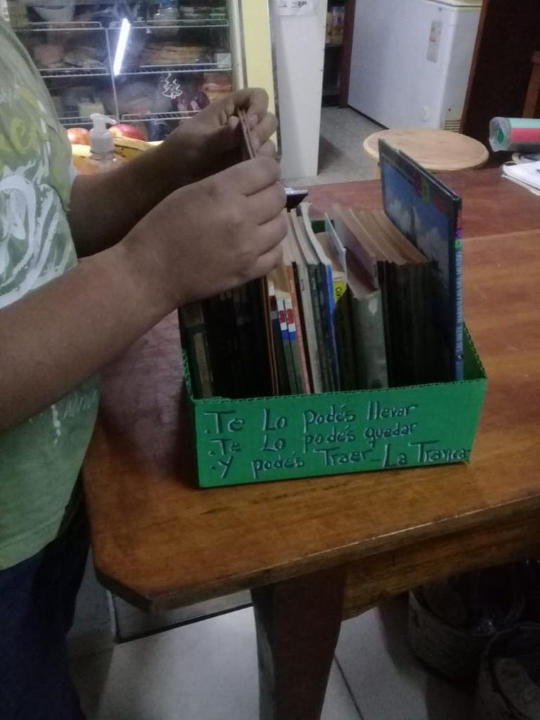 “Pensando en que lo único que quedó abierto fueron los tres comercios para las compras, se me ocurrió la idea de armar esos módulos. La mayoría de libros son donados. La idea es que los libros pueden quedarse a la casa y volver a los estantes", dijo a Cadena 3.