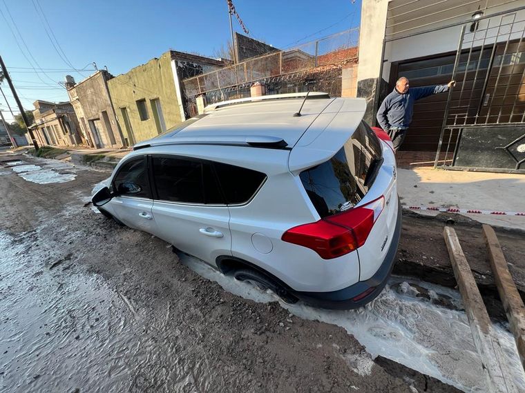 Una camioneta Toyota Rav 4 fue tragada este viernes por el asfalto en Villa Revol Anexo, en la ciudad de Córdoba.