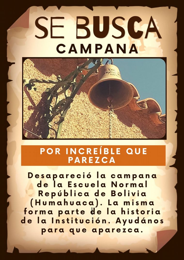 Una ingrata sorpresa se llevó la comunidad de la histórica Escuela Normal de Humahuaca al percatarse, este martes, que le habían robado la campana del patio, aquella que utilizan para anunciar el ingreso y los recreos.