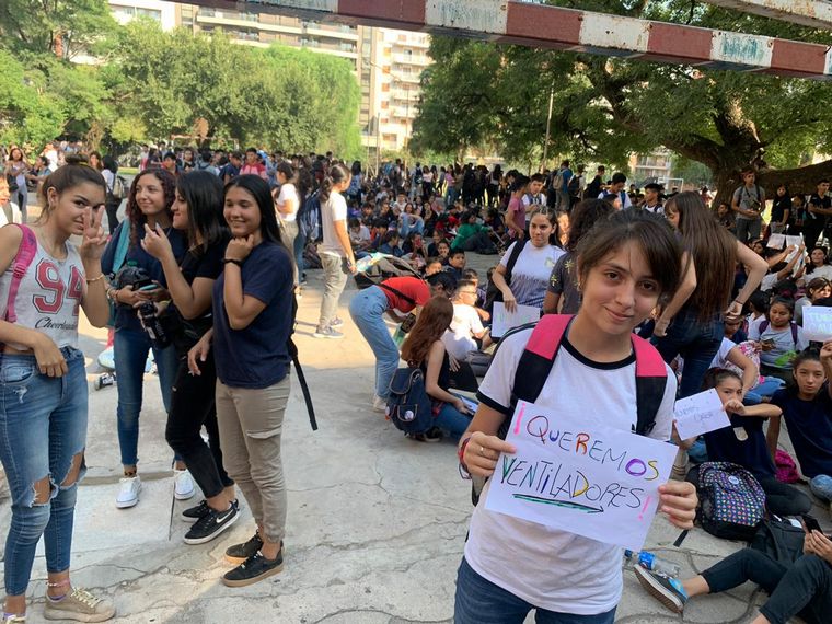 Los alumnos de la escuela Deán Funes de la ciudad de Córdoba se quedaron este miércoles en el patio de la institución sin entrar a las aulas como protesta por falta de ventiladores ante el calor.