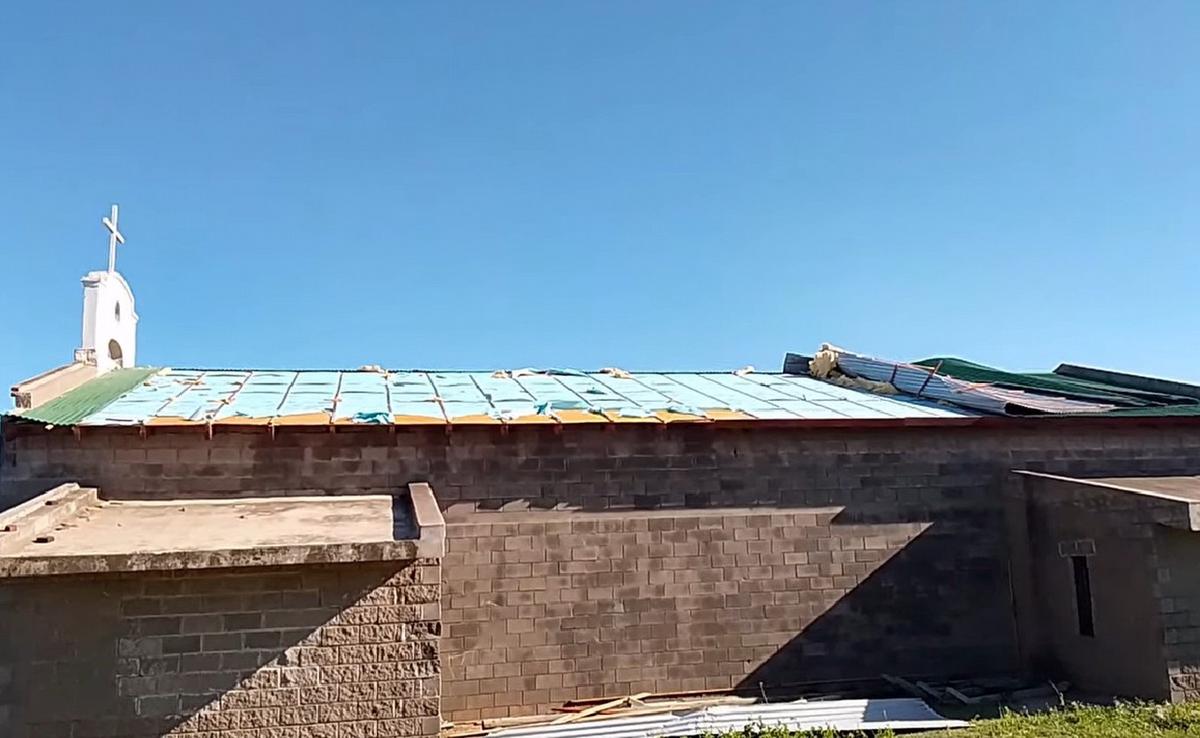 Audio. Temporal en Córdoba: el viento voló parte del techo de una capilla en Deán Funes