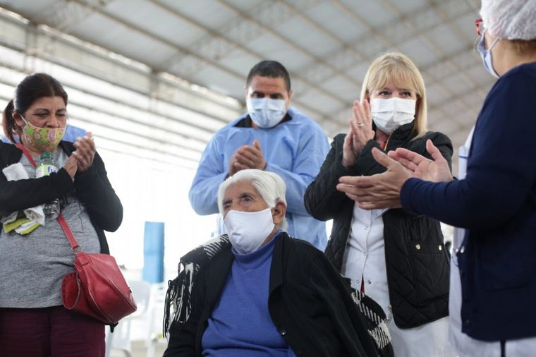 Se presentó caminando a vacunarse con su hija y nieta. Es madre de 7 hijos y tiene más de 50 nietos y bisnietos.