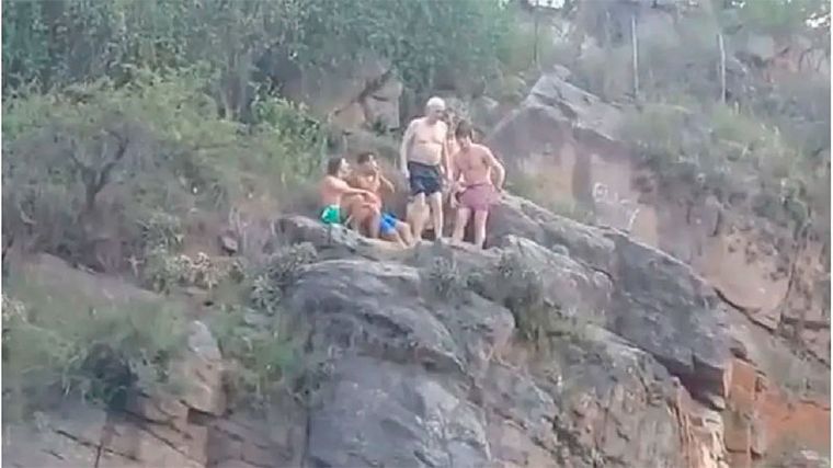 Alberto Frascaroli, con sus 79 años, saltó de nuevo desde los siete metros de las piedras más altas de la playa Miami, sobre el río Santa Rosa, en uno de los balnearios más concurridos de Santa Rosa de Calamuchita.