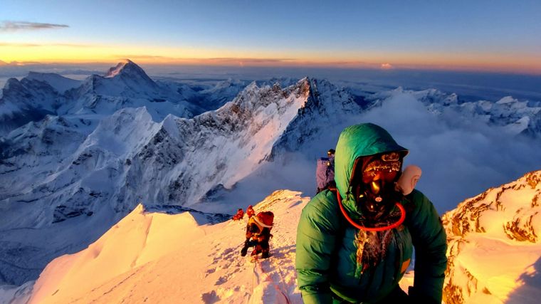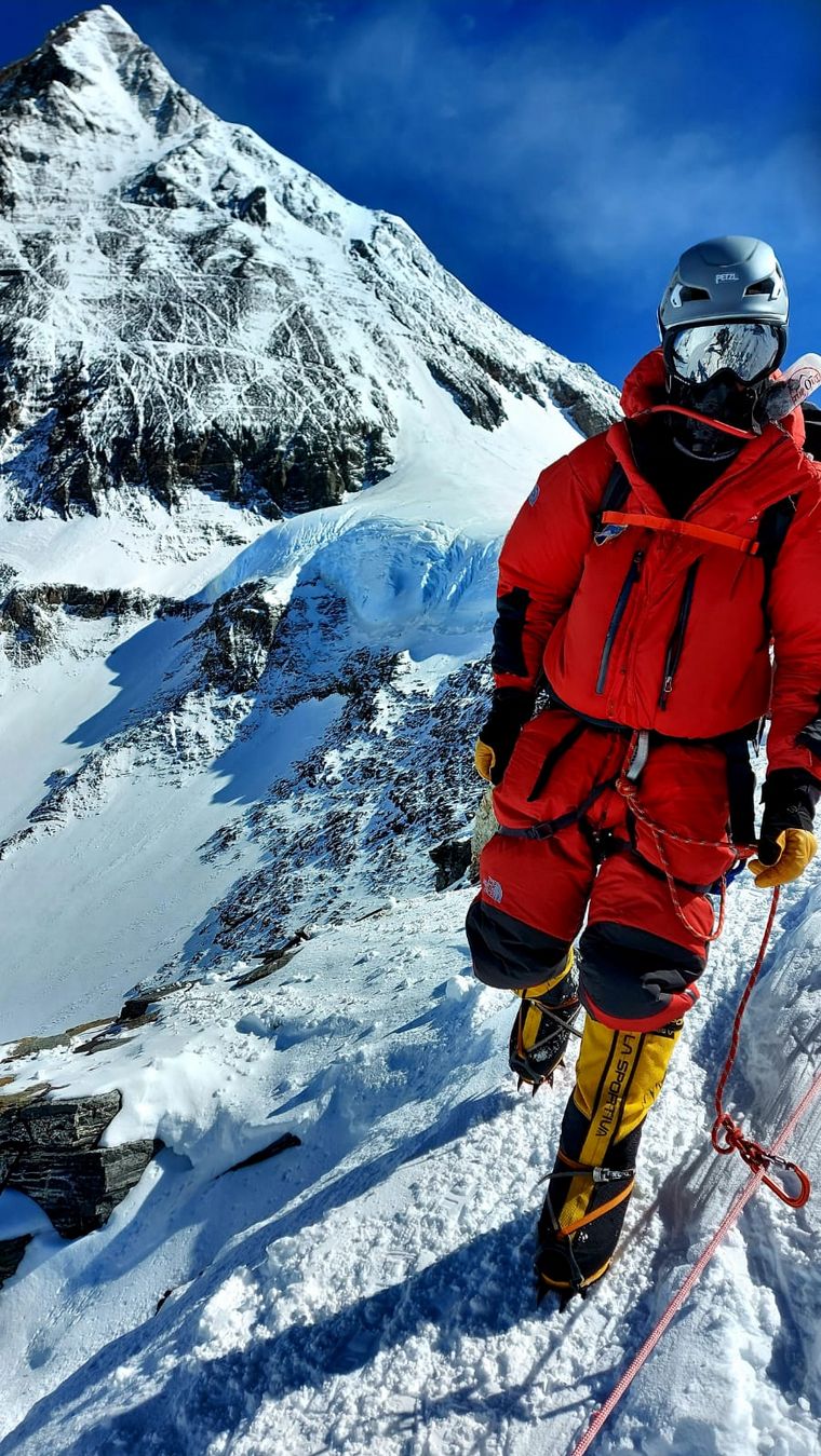 "La parte más linda fue cuando empezó a aclarar y lo único que había a mi alrededor eran mis pies. Ya no estaban más sobre el cielo y seguíamos subiendo. Se me congeló la máscara de oxígeno y cuando llegué a la cumbre pude sacar fotos y luego emprender el camino de regreso", describió.