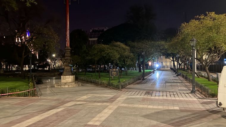 El móvil de Cadena 3 aprovechó para recorrerla en la madrugada. Luminarias nuevas, rejas bajas, riego por aspersión, sistemas termosolares para agua caliente, un sector de juegos para niños y otro para perros y hasta peces en la fuente, algunos de los detalles.