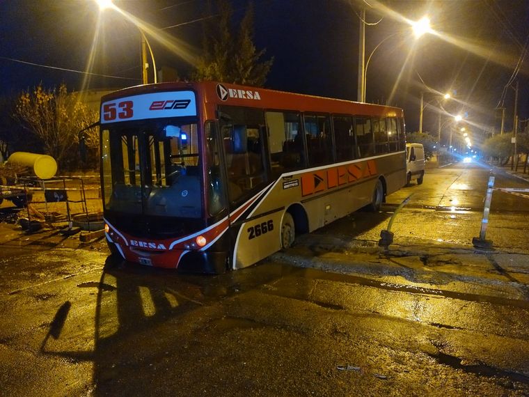Se trata de un colectivo de la línea 53 de Ersa, cuyas ruedas delanteras quedaron hundidas en una zanja, producida por una obra.