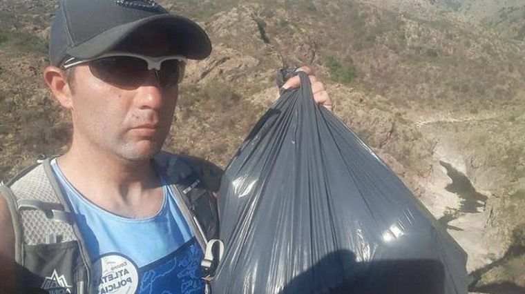 Un policía caminó 20 kilómetros y juntó 30 kilos de basura
