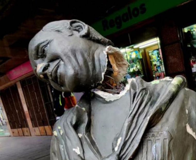 Durante la noche de este miércoles, le arrancaron la cabeza. Está frente a la sede del club en Plaza San Martín de la ciudad de Córdoba.