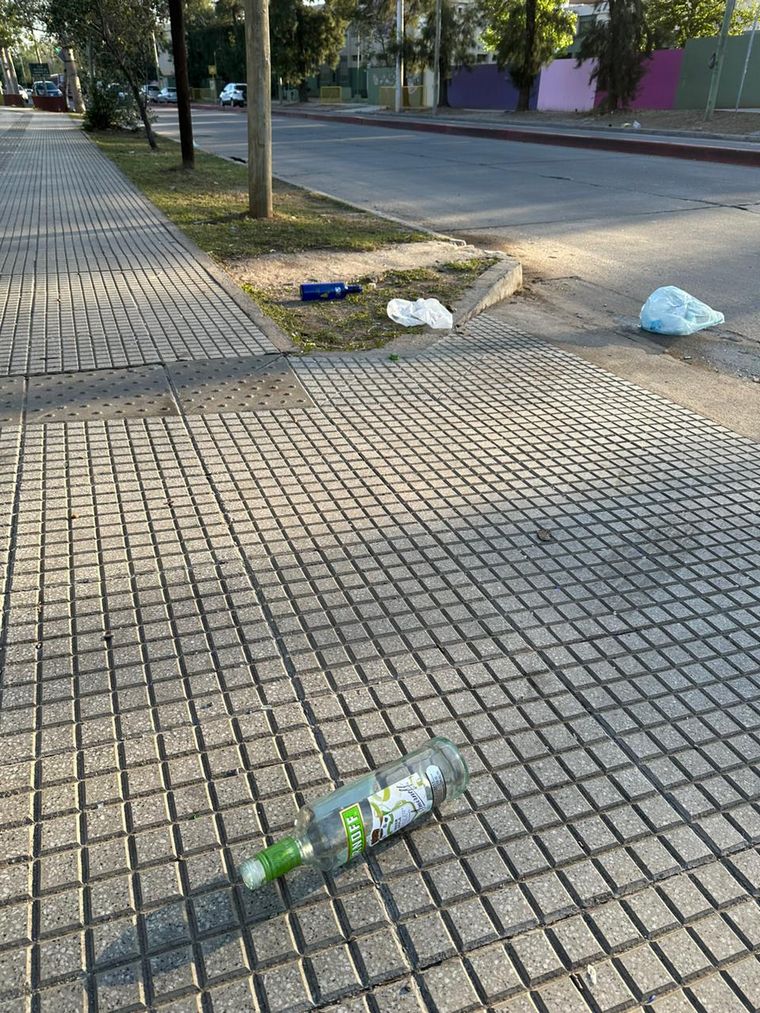 Durante la mañana quedan los rastros de botellas de bebidas blancas tiradas en la calle, vasos, y un montón de basura que dan indicios de una fiesta nocturna.
