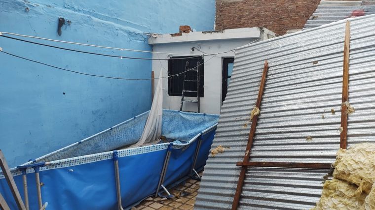 En su recorrido sin control, el techo terminó provocando daños en el departamento del fondo del terreno, además de arrasar contra una pileta.